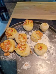Pizzabrötchen lassen sich auch backen, dafür muss allerdings die Temperatur reduziert und die Backzeit verlängert werden.